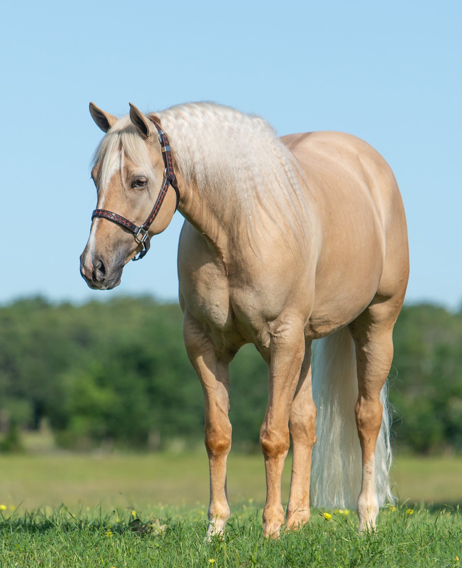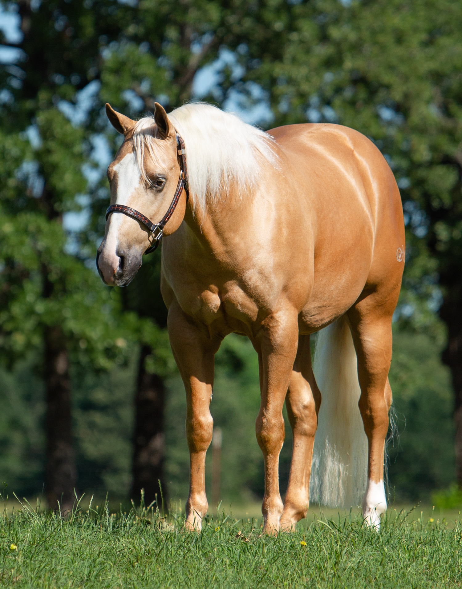 Gunmetal Spook, sired by Smart Spook and out of the Colonels Smoking Gun mare Gunners Deja Vu, excels in the Open, Non-Pro and Youth ranch horse versatility events. The 2020 palomino gelding is ready to show in ranch trail, ranch riding and ranch rail classes.